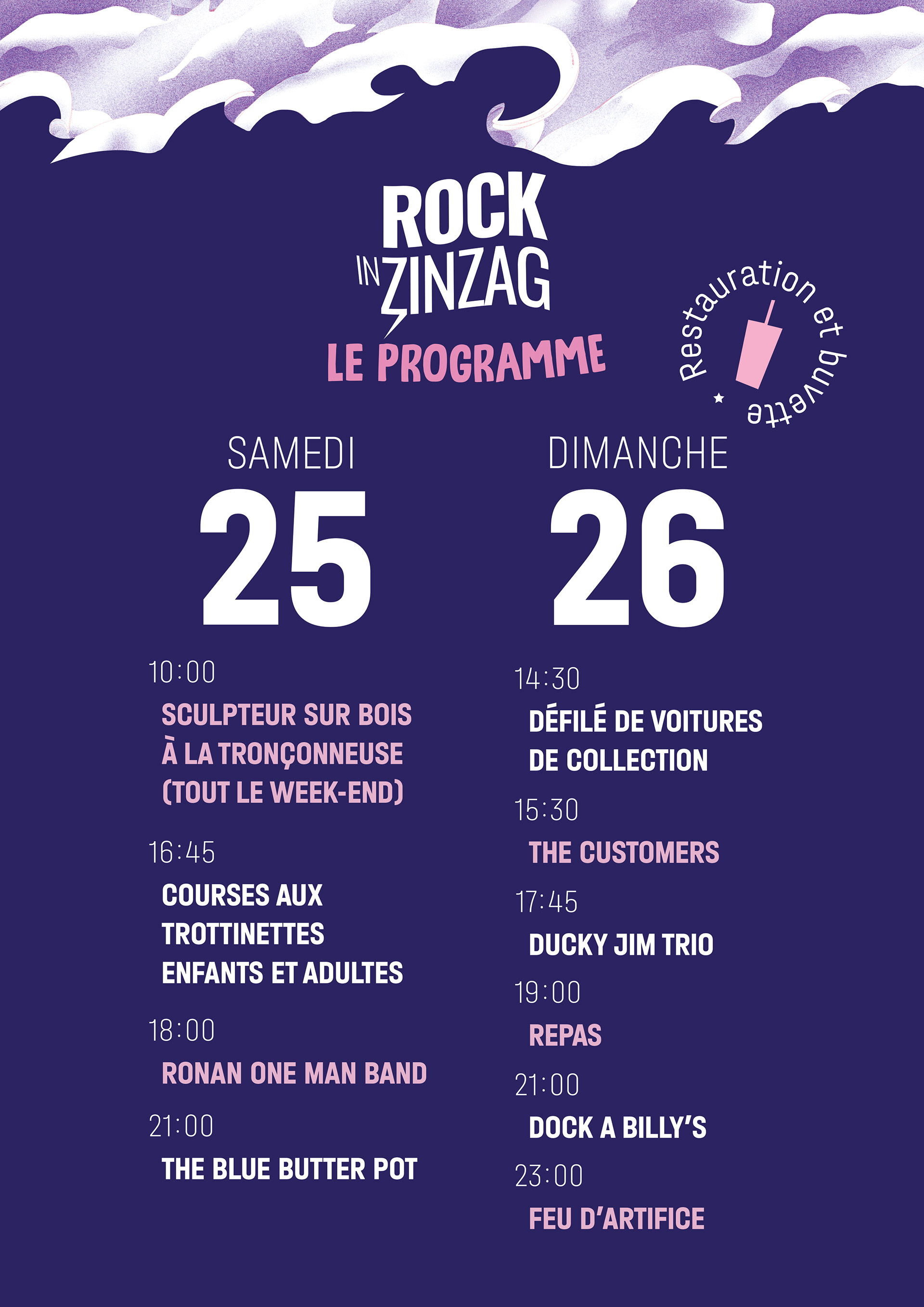 Direction artistique, montage et motion design réalisé pour le festival local ROCK IN ZINZAG édition 2022